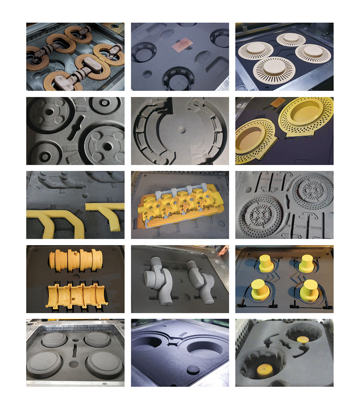 對于一些特殊鑄件,比如爐頭、帶散熱片的氣缸頭等,模板反壓工藝能較容易解決成型問(wèn)題