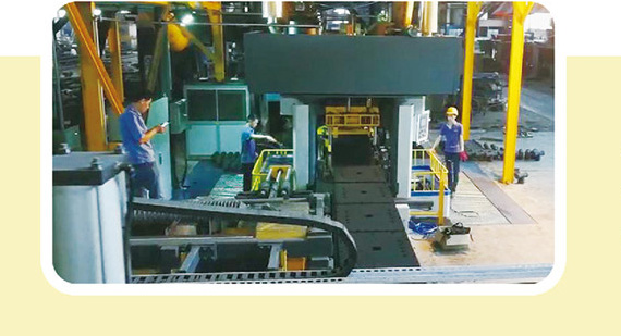 造型線(xiàn)附帶兩只模板框(一只生產(chǎn)中,一只供準備);通過(guò)快速換模機構,實(shí)現快速換模,提高了生產(chǎn)率